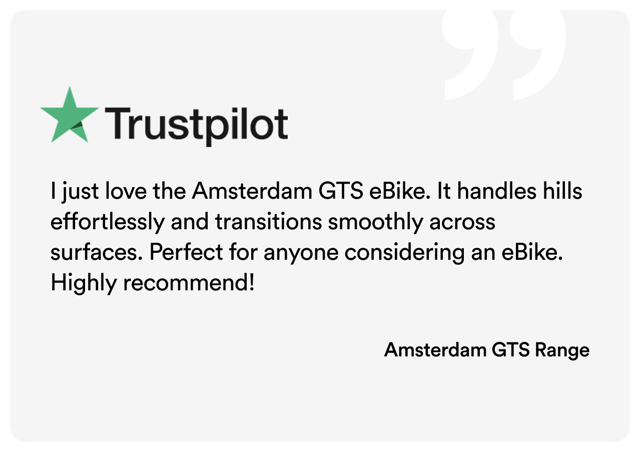 The Amsterdam GTS electric bike has a Bafang M410 Mid-Drive Motor, which serves up a maximum torque of more than 90Nm – one of the most powerful eBike motors around. Talking of power, you can tackle climbs with gradients up to 25%, no sweat (OK, maybe just a tiny bit). But no matter how hard you ride, it’s super silent.