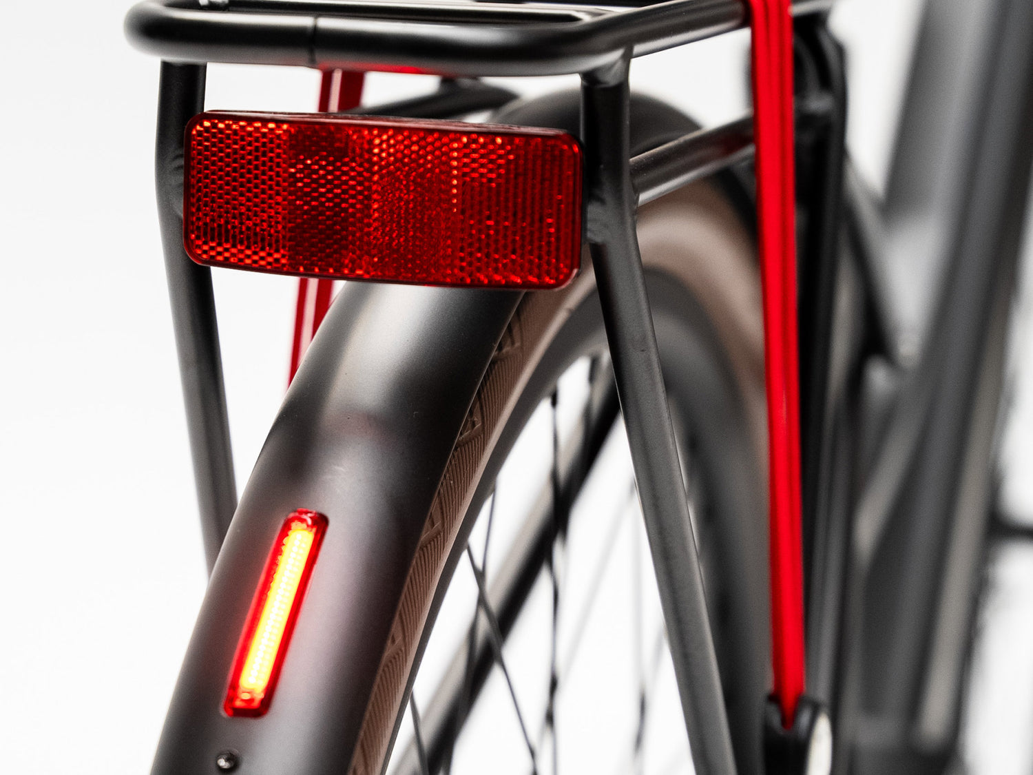 Illuminate your path in style with the Jordaan GTS eBike, boasting premium lighting features. The front light is powered by Spanninga® XO with Philips® optical system. Integrated in the rear fender the Buechell® Nano COB LED Technology provides exceptional safety and visibility from behind, including brake light technology. Illuminate your ride with cutting-edge lighting solutions for a safer and more enjoyable cycling experience.